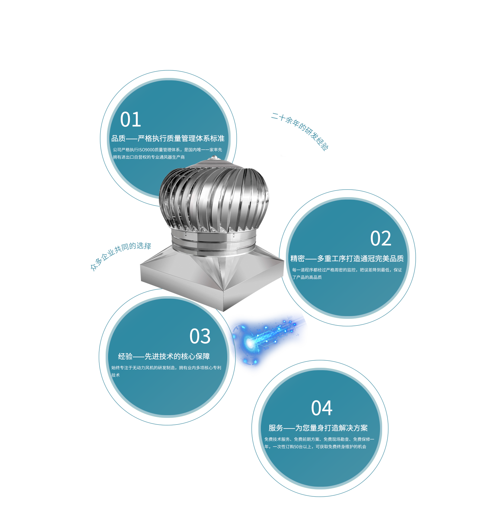 天長(zhǎng)市通冠無(wú)動(dòng)力風(fēng)機(jī)有限公司,是集研發(fā)、生產(chǎn)、銷售于一體的,專業(yè)無(wú)動(dòng)力風(fēng)機(jī)生產(chǎn)廠家。公司坐落于205國(guó)道南京與揚(yáng)州之間,位于省級(jí)高新經(jīng)濟(jì)技術(shù)工業(yè)園,交通便利。“通冠”有著一支技術(shù)精湛、服務(wù)非凡的隊(duì)伍。所有一線技術(shù)工人技術(shù)熟練、質(zhì)量意識(shí)強(qiáng)。公司嚴(yán)格執(zhí)行ISO9000質(zhì)量管理體系,一貫貫徹“以質(zhì)量為生命”、“以信譽(yù)為根本”、“以服務(wù)為基礎(chǔ)”的理念···[查看詳細(xì)]